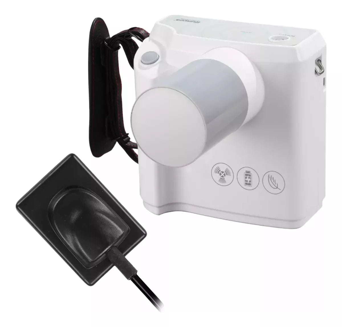 Flexibilidad en la Posición: El equipo se puede fijar fácilmente en la silla del paciente para realizar disparos precisos o utilizarse de manera manual para mayor versatilidad.