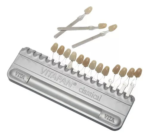 La Guía de Colores VITA es una herramienta esencial para odontólogos y técnicos dentales, diseñada para garantizar una correspondencia precisa del color dental en restauraciones estéticas. Esta guía ofrece una gama completa de tonos de dientes naturales, permitiendo la selección rápida y exacta del color para lograr resultados de restauración altamente estéticos y naturales.